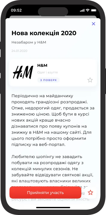 integrated indoor navigation service. It helps users easily navigate the shopping center (no analogues exist in Ukraine yet);