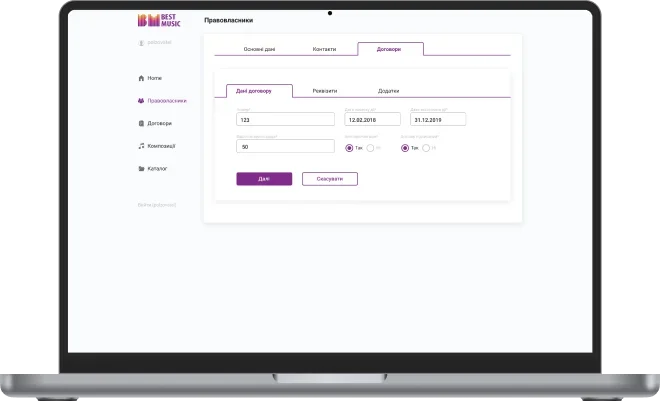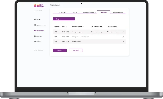 Компанії потрібен був надійний інструмент управління, який мінімізує ризики втрати даних, прискорить фінансові операції, дозволить працювати з великою кількістю артистів і треків без додаткових витрат.