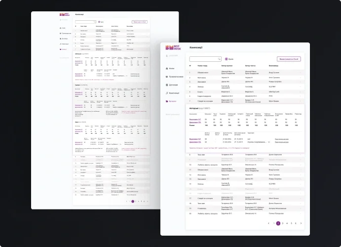Почали з етапу Discovery: зібрали вимоги, визначили користувацькі сценарії, обрали технології. До автоматизації всі дані були розрізнені: Excel-файли та залежність від співробітників. Ітеративна розробка дозволила швидко адаптувати функціонал під реальні задачі бізнесу. Таким чином ми стали на шлях створення інструменту, який злагоджено та оперативно працюватиме для масштабного музичного видавництва BEST MUSIC і оптимально підтримуватиме таку величезну кількість артистів, що працюють з лейблом.