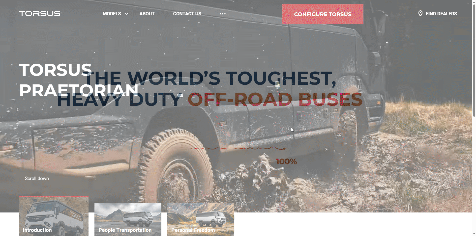 Компанія Torsus – це міжнародна компанія, яка займається створенням та виготовленням всюдихідних пасажирських автобусів для різних потреб. Команда досвідчених та кваліфікованих фахівців із різних галузей та спеціалізацій – від інженерів до дизайнерів – працює разом над розробкою продуктів TORSUS: від надміцного PRAETORIAN до компактного та потужного TERRASTORM.